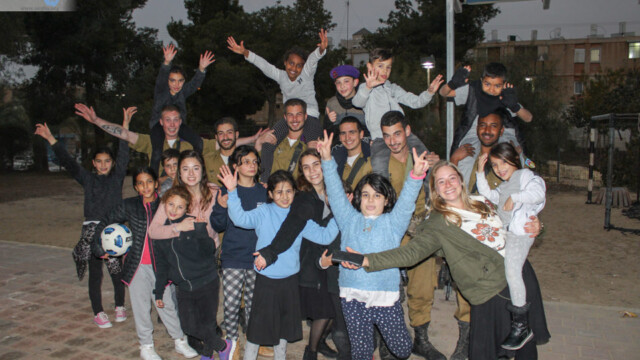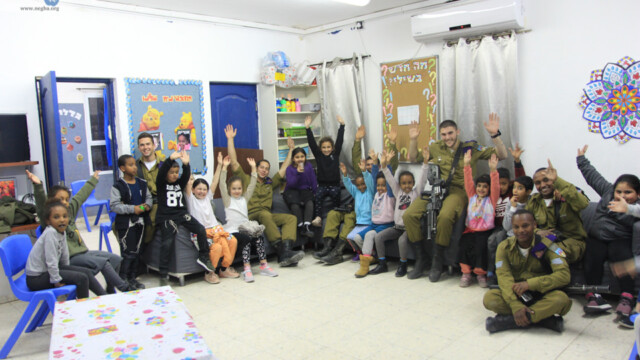 The Israel Defense Forces recently conducted a military coup in Beersheva, as combat soldiers from the Givati Brigade marched into Negba’s after-school Homes and conquered the hearts of its kids. Clad in army fatigues and armed with much love, roughly 15 ‘special ops’ volunteers spent an afternoon leading activities and interacting with Negba’s children, who are still in awe from the visit.